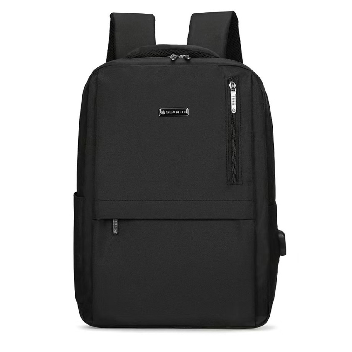 Mochila preta para notebook até 15” Seanite, com acabamento reforçado e compartimento especial para eletrônicos. Além do espaço interno funcional, apresenta bolsos laterais e alças ajustáveis, proporcionando conforto e praticidade. Um produto que alia modernidade, resistência e utilidade no dia a dia.