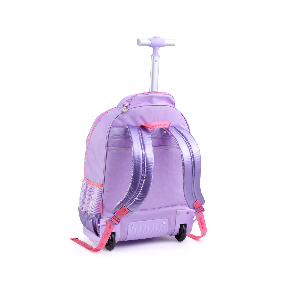 Mochila feminina 18″ com rodas Seanite 43359 possui rodas resistentes, puxador retrátil, compartimento principal amplo e alças acolchoadas — excelente para transporte confortável de materiais.