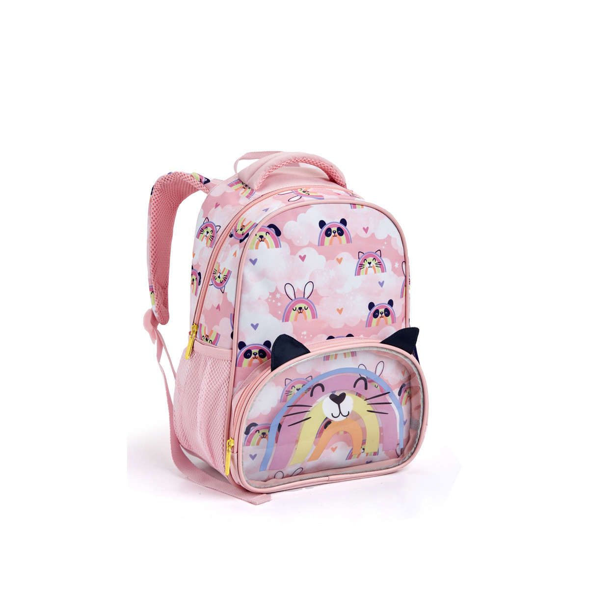 A mochila infantil arco-íris com bichinhos Seanite 41325 encanta pelo visual lúdico e funcionalidade. Feita em poliéster, possui compartimento principal, bolso frontal com zíper e alças acolchoadas, sendo perfeita para crianças em idade escolar.