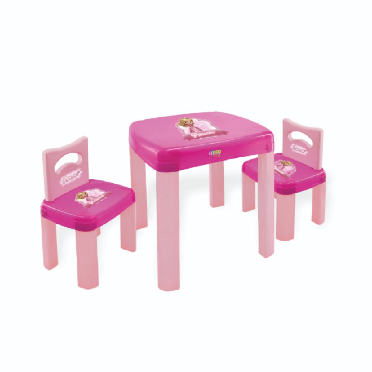 A Mesa Infantil Princesa com 2 Cadeiras da Simotoys oferece conforto, beleza e praticidade para o ambiente infantil. Com design encantador e estrutura reforçada, é ideal para brincadeiras, desenho e refeições.